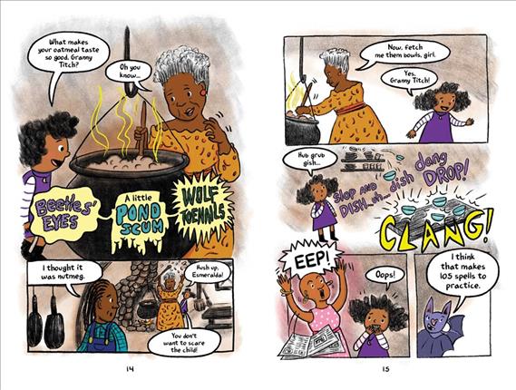 Other - 04/21/2025 Young witch Jazzy struggles with having confidence in her magical abilities: "Look at all them witches," Jazzy says, noting a wall of photos showcasing her powerful ancestors, "THEY fit in." This concern worsens when schoolteacher Madame Melcha announces the day’s lesson: flying. As Jazzy watches her peers successfully mount their brooms, Jazzy-who dangles precariously from her own broom as it haphazardly bends and twirls-feels inadequate. But then she learns of an alternate means of transportation-cycling-and rather than focus on her schoolwork or relationships, she builds a bicycle of her own. Her angst about flying becomes a thing of the past, until Madame Melcha announces that the students will participate in an upcoming flying parade in celebration of the supermoon. As Jazzy continues to founder in her attempts to handle a broom, she worries she’ll never get the hang of this witchy rite of passage. Whimsy abounds in this playful series-opening graphic novel by Bagley (Maurice), relayed in moody, jewel-toned hues and striking shadows. Across a luminous, rhythmically told story, Bagley stages silly scenarios centering an earnest and well-intentioned, occasionally one-track-minded protagonist that perceptively drive home themes of self-confidence, accountability, and embracing one’s flaws and strengths. Characters are depicted with varying skin tones. Ages 8-12. (July) - Copyright 2025
