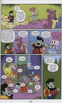 Jack, who is half-vampire and half-lumberjack, struggles to choose between a vampire academy and a lumberjack school when all he really wants is to dance. In graphic novel format.