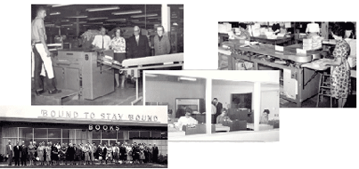 The library world had long referred to the prebound books from New Method as "those bound to stay bound books", thus it was decided to change the company name to Bound to Stay Bound Books in 1970. Also in the 1970s, the company began to make its own decorated covers and produce its own catalog cards, both of which were previously bought from outside companies. The bindery's processing department, where employees make the books shelf-ready with catalog cards, pockets, spine labels, spine stamping and laminated jackets, grew rapidly in the 1970s and 1980s as fewer and fewer librarians had time to perform these tasks themselves.
