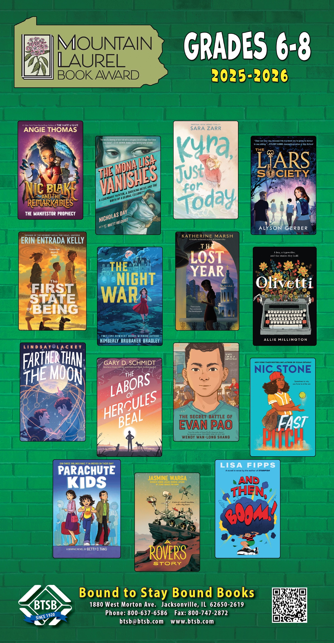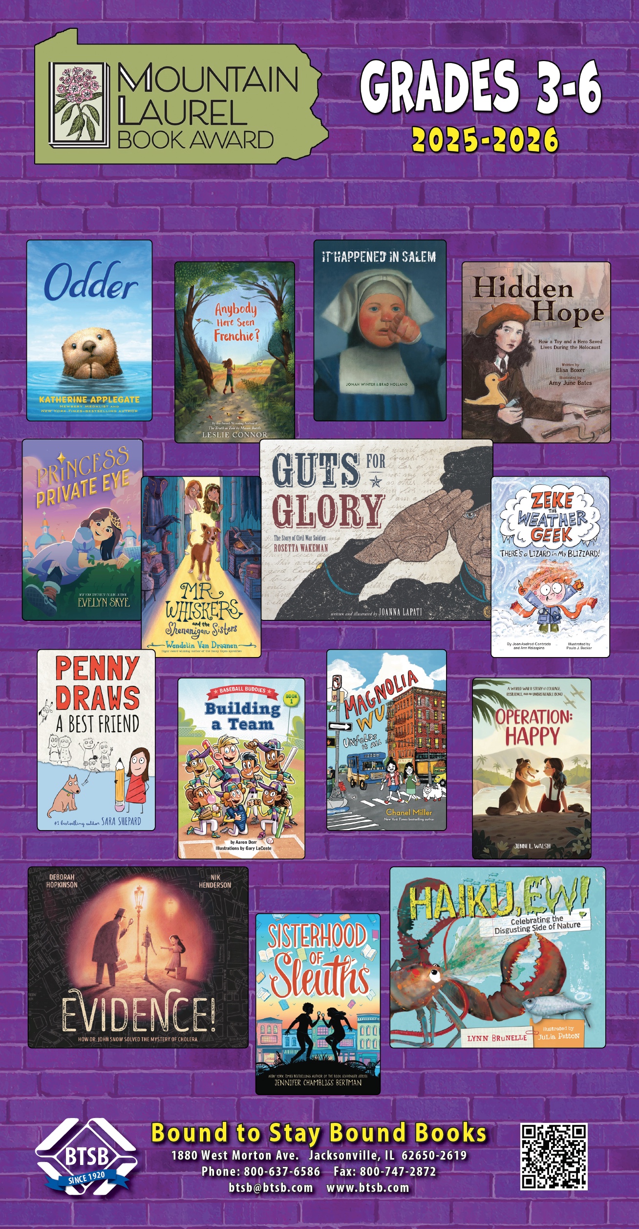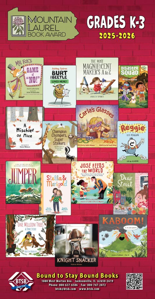 PA 2025-2026 Mountain Laurel Book Award Grade K-3PA 2025-2026 Mountain Laurel Book Award Grades 3-6PA 2025-2026 Mountain Laurel Book Award Grades 6-8PA 2025-2026 Mountain Laurel Book Award Young Adult