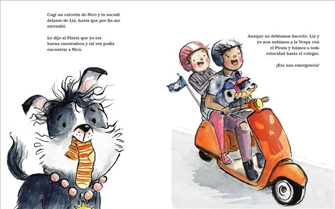 School Library Journal - 06/01/2025 K-Gr 3—Perla the dog has two superpowers. First, she is loved by everyone who meets her, and second, she can roar like a lion. Perla and her owner Nico Rico were the first ones to spot the Pirate when he first moved in. They knew he was a pirate because he had the name PIRATES on his shirt, rode a Vespa, and had a guitar case. Nico's sister Liz wants to get on the Vespa, but their dad doesn't approve. After gathering magic dust that a wizard left behind, and of course using Perla's first superpower, Nico and Perla befriend the Pirate. They hear his rock band, The Pirates, practice. Dad and the whole neighborhood hate the music, but Liz loves it. All changes when the Pirate comes to the rescue. He and Perla work together to find a missing Nico, after a dark and rainy day made Mom late to pick him up from school. A charming tale about a special dog that will entertain readers. The story's message is a simple one: we shouldn't let our differences divide us or first impressions be stumbling blocks to friendships. Perla is effervescent in both editions. This is a great text to use in classrooms for teaching reading skills like cause and effect, problem and solution, and inference and characterization. VERDICT Include these in story time collections and picture book shelves. —Melanie Ortega - Copyright 2025 Publishers Weekly, Library Journal and/or School Library Journal used with permission.