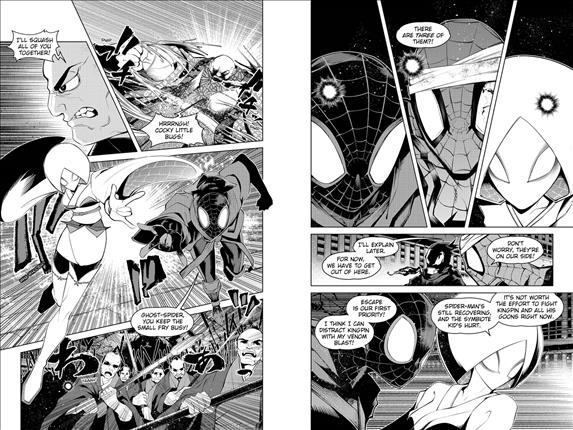 Travel to a parallel universe where the shogunate still rules Japan and the evil Kingpin, Wilson Fisk has fled America to establish himself as Governor of Edo. Spider-Man, Miles Morales, and Ghost-Spider are hot on his trail. But the Kingpin has a trick up his sleeve: He's brought an alien parasite capable of granting extraordinary powers. In manga graphic novel format.