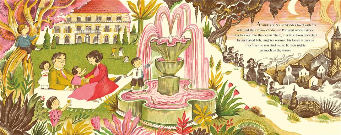 Other - 06/23/2025 Portuguese diplomat Aristides de Sousa Mendes (1885-1954) performed an extraordinary feat of moral courage, here described as perhaps WWII’s "greatest individual act of rescue." While the German army advanced toward his post in Bordeaux, France, many were "driven from their homes, their countries, and everything they ever knew and loved," writes Brown (Like a Diamond in the Sky) in quietly propulsive narration that conveys escalating, life-and-death urgency. Though Portugal "officially took no side in the war," it joined the world in refusing the refugees; de Sousa Mendes, haunted by the frantic, growing crowds gathered at his consulate, nevertheless resolved to say yes. In direct violation of orders, he signed thousands of visas-even shortening his signature to conserve ink-and eventually escorted groups through shortcuts and across the border to Portugal at great personal cost. Digitally colored pencil illustrations by Castrill?n (Nano) include sweeping compositions, finely etched textures, and curvilinear motifs to convey the tide of events and the protagonist’s steadfast, heroic defiance. Includes contextualizing back matter. Ages 5-8. Author’s agent: Sean McCarthy. Sean McCarthy Literary. Illustrator’s agent: Helen Boyle, Pickled Ink. (Sept.) - Copyright 2025