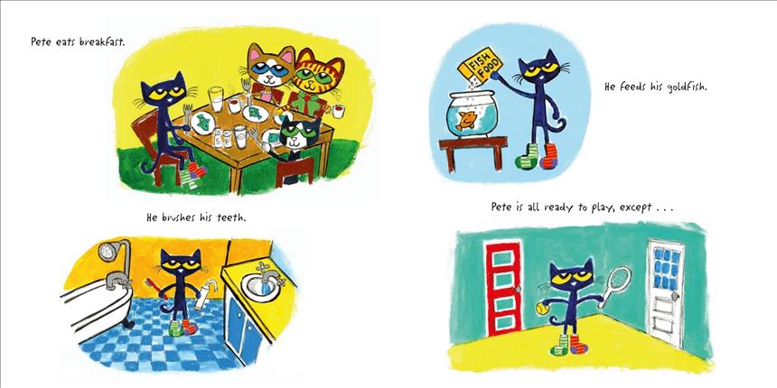 It's time to play outside, but there's one problem. Pete the Cat's groovey white shoes are missing! Pete can't find them anywhere and his friends are waiting for him. So he tries on every pair of shoes he comes across with hilarious results.