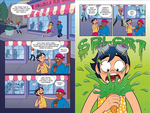 Introducing the newest superheroes of New Bork City: Maker Girl and Professor Smarts! So what if they didn't actually receive superpowers when that comet hit earth a few months back and created a bunch of other superheroes and supervillains? Maker Girl can make just about anything, and Professor Smarts is the sharpest kid on the block. They're more than a match for villainous Mr. Anti-Freeze, who's bent on ruining the town's ice cream by turning it all to slime! In graphic novel format.