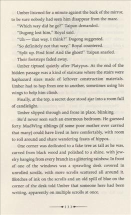 When his sister, Sora, causes a tragedy at Jade Mountain Academy, Umber finds himself on the run and thrown into a whole new role--that of protector. Umber and Sora fly south in search of a place where they can live far away from other dragons . . . until a kind, hybrid dragon named Mulberry saves him from a kraken attack, and Umber realizes they don't have to survive alone after all. As the two MudWings settle into the Court of Refuge, nothing there is what it seems.