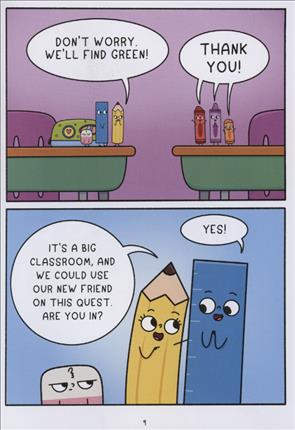 When Pencil befriends an eager Ruler, Eraser struggles to adjust to the new friendship dynamic on a mission to rescue a missing crayon. In graphic novel format.