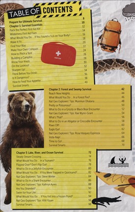 Booklist - 03/01/2026 This well-organized and accessible manual offers realistic and field-tested advice to help kids plan to survive just about any outdoor situation. There are helpful strategies for basic tasks (assembling first-aid kits, building a fire, pitching a tent), navigating various terrains (forests and swamps; lakes, rivers, and oceans; mountains and deserts), and being prepared at home for events like hurricanes, tornadoes, earthquakes, or power outages. There’s a robust team of 29 kids who propel the action through the image-rich pages, demonstrating proper techniques in multiple color photos supported by clear directions and numerous sidebars offering tips, shortcuts, and safety reminders. There are full-page portraits of conservationists and naturalists, quick-fact comprehension quizzes, and numerous “Decision Time” scenarios in which readers are challenged to make the right decisions to survive a catastrophe (avalanche, blizzard, quicksand). From survival hacks to nature facts, fending off crocodiles to pooping in the woods, avoiding bees or getting creative with duct tape, there’s an amazing amount of reliable information arranged in logical thematic units (along with a detailed index). - Copyright 2026 Booklist.