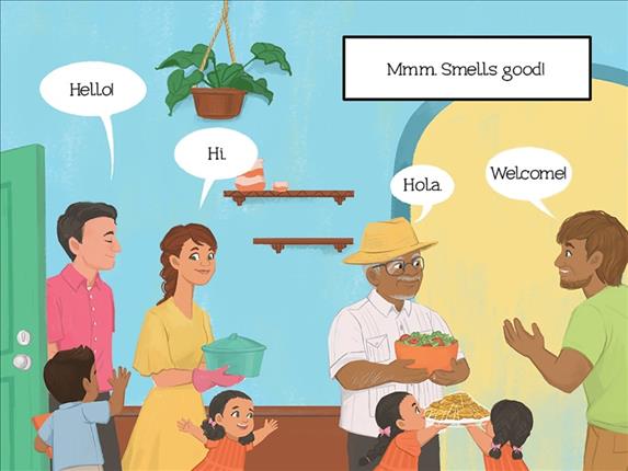 Booklist - 03/01/2025 Imagination and love of food collide at the dinner table in this debut graphic novel for early readers. An unnamed Latino protagonist daydreams about jungle animals before rushing downstairs for a family dinner. While he eats everything, his family members are far more particular, with tastes as different as the animals in the jungle. The short sequence features full-page, brightly colored illustrations depicting a warm scene around the dinner table and quirky panels portraying the protagonist’s imagination playfully transforming his family members into animals enjoying their favorite foods: Papa, who loves meat, becomes a lion, while Uncle Carlos, a fan of shrimp, becomes a bright pink flamingo. Short sentences, large panels, and sounds of eating drawn big and bold make this early comic perfect for young ones just starting to read independently or those starting to transition from picture books to comics. - Copyright 2025 Booklist.