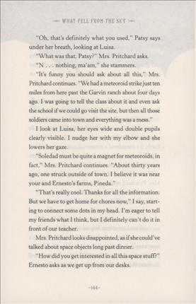 Booklist - 02/01/2025 When soldiers land in Soledad, taking the town hostage in a military game, Pineda Suarez Matlage does everything he can to keep undercover; unfortunately, he didn’t account for the alien that landed in his family’s pecan orchard the very same day. When he finds the strange girl, Luisa, hiding in his barn, her bluish-gray skin and huge green eyes make him think only about how amazing it is to be able to talk to someone from another planet. When she tells him about being separated from her parents on the way down to Earth, Pineda becomes determined to help. But before he can wrangle his friends, soldiers swarm the town, interrogating everyone about seeing “something that seems like it’s not from this world.” In Cuevas’ third novel, themes of home and belonging shine through the characters’ honest observations of their world. With a setting rooted in history, the whimsy of the supernatural plot feels akin to the strange fantastic of Tim Burton films. Fans of surrealist stories like Holes will find this narrative similarly appealing. - Copyright 2025 Booklist.