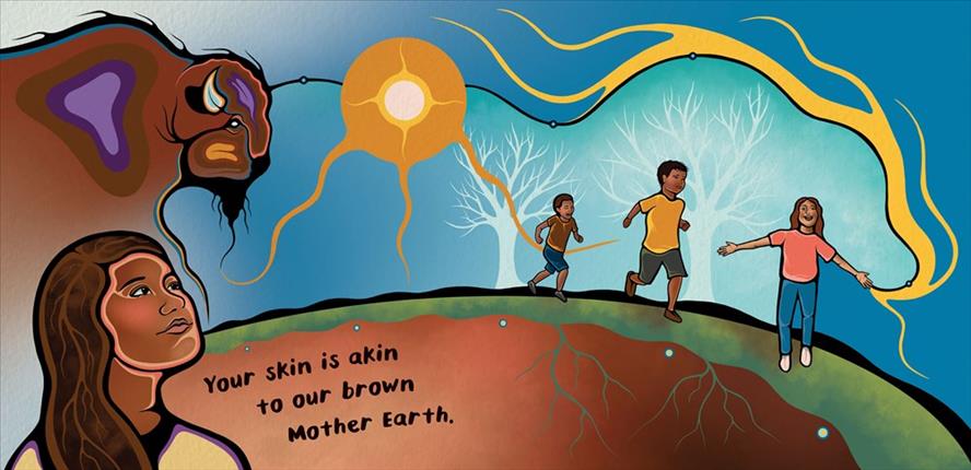 School Library Journal - 07/01/2025 K-Gr 4—A short, powerful poem celebrating the Indigenous peoples of the Americas and their deep connections to the land. It begins with the birth of a child and flows through the exploration of history, politics, and culture for various Native peoples of North and South America. At times the narrative flow of the poem can be clunky, so it might be best served as a well-rehearsed read-aloud. However, the messaging is always clear and strong, emphasizing the depth of the Indigenous peoples' ties to the land and the pride of their heritage. Complementing the power of the message is the stunning artwork by Kewageshig (Anishinaabe), who sweeps saturated colors and vibrant images across every page. The end includes warm notes from the author and illustrator, offering young readers both affection and encouragement. A map is annotated with more specific information about particular groups, including their traditions and some historical notes. VERDICT A solid addition to every collection, expanding on texts by Indigenous authors.—Kaitlin Malixi - Copyright 2025 Publishers Weekly, Library Journal and/or School Library Journal used with permission.
