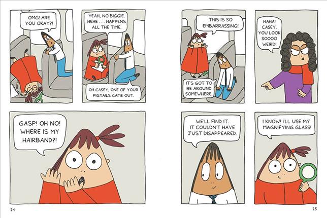 Hapless-but-spirited tween detective Casey tackles cases big and small, from a new girl at school to a lost cat. In graphic novel format.