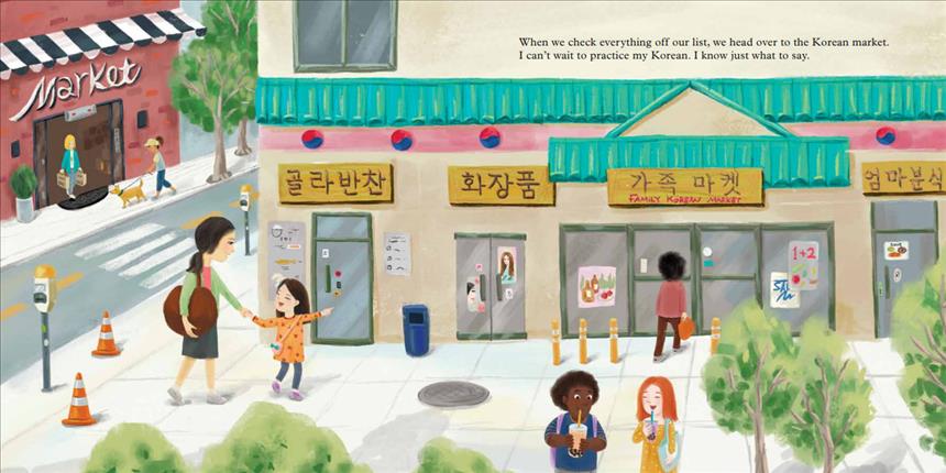 What does Thanksgiving dinner look like when both sides of the family come together? When it's time to shop for ingredients, a girl makes two lists--one for the local market and one for the Korean market! Thanksgiving Day is full of food and family, football and conversation, and of course, giving thanks. By the end of the meal, she has a newfound love for her family's two distinct cultures.