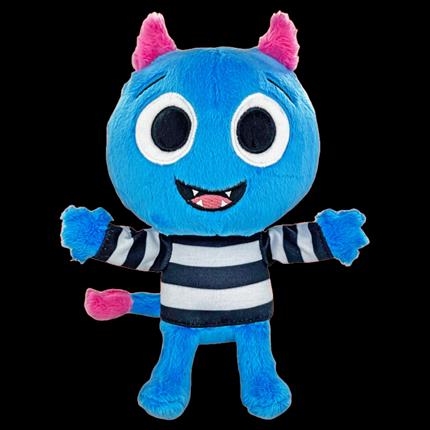 MerryMakers There's A Monster In Your Book 10" doll. Monster is made with bright fuzzy blue fabric, bold embroidered details, black and white striped shirt, and a pink-tipped tail. From the popular book series created by Tom Fletcher.